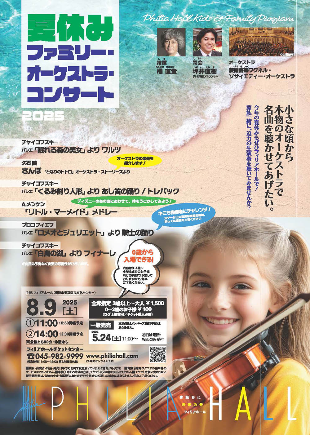 2025.8.9 sun 13:00 横浜・青葉区 フィリアホール 橘直貴指揮 夏休みファミリー・オーケストラ・コンサート2025